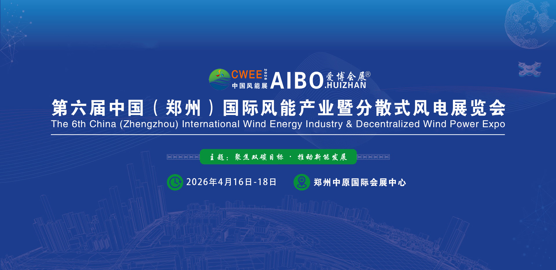 河南作為我國人口大省,農業大省,用能大省,新能源產業在中部市場擁有巨大的發展空間和潛力。為推動中部地區新能源產業發展,搭建零距離合作交流平臺,“第六屆中國(鄭州)風能產業暨分散式風電展覽會(簡稱:CWEE風能展)”為響應市場需求和政府大力支持,大會以“聚焦雙碳目標、推動新能發展”為主題蓄勢待發,為企業提供一場高質量展示交流盛會。屆時誠邀您蒞臨現場參觀、參展。